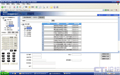 正音科技綜合服務(wù)系統(tǒng)實(shí)現(xiàn)了與Cisco IPCC平臺(tái)的緊密整合,Cisco IPCC底層多媒體通信平臺(tái)通過CTI技術(shù)與綜合服務(wù)系統(tǒng)實(shí)現(xiàn)通信,實(shí)現(xiàn)諸如個(gè)性化自助服務(wù)(查詢自己的運(yùn)營(yíng)違章情況等車輛情況)、呼叫自動(dòng)定位(根據(jù)來電號(hào)碼判斷客戶所處最近的救援中心①)等功能?蛻暨可以使用正音科技綜合服務(wù)平臺(tái)所提供的手機(jī)短信功能實(shí)現(xiàn)信息查詢、維修救援、投訴等業(yè)務(wù),甘肅省公路運(yùn)輸管理局也可以是用手機(jī)短信功能提供路況信息、運(yùn)輸政策等信息的發(fā)布。