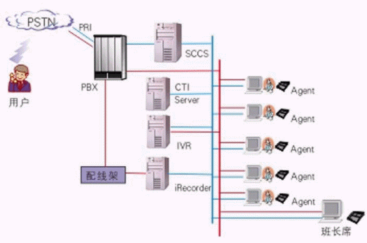 其中交換機采用Meridian,軟件平臺采用浩豐時代的系列解決方案:自動語音應答系統(tǒng)IVR2000®,CTI平臺VOM®,坐席應用系統(tǒng)iAgent®和數(shù)字錄音監(jiān)聽系統(tǒng)iRecorder?。該系統(tǒng)既可以利用強大的呼入排隊功能處理客戶請求,也可以利用呼出功能為客戶提供主動服務(wù)。