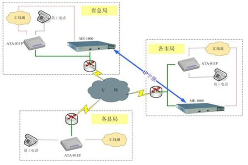 根據(jù)政府機構的特點,搭建VoIP系統(tǒng)應本著以下原則:  解決方案拓撲圖