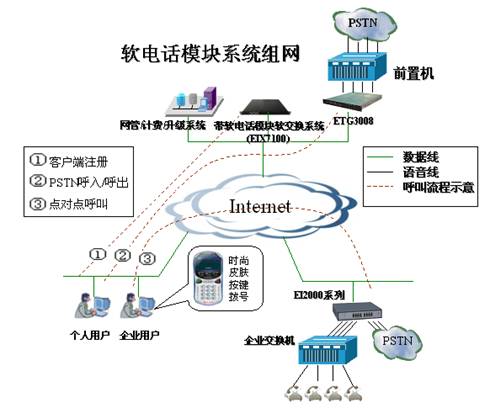 在PC上安裝SOFTEIA后,用戶使用耳機及麥克風,通過SOFTEIA進行撥號,即可進行呼叫。除可以與傳統(tǒng)電話(例如手機、座機、小靈通等)進行通信,還可以與其它SOFTEIA、EIA等進行通信。