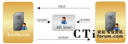 方式二:EastFax支持標(biāo)準(zhǔn)的LDAP(Light Directory Access Protocol ,輕量級(jí)目錄訪問協(xié)議),因此可以方便地與其他任何支持LDAP的信息系統(tǒng)(如Active Directory、Lotus Domino)進(jìn)行用戶信息的實(shí)時(shí)同步,實(shí)現(xiàn)了企業(yè)對(duì)用戶的統(tǒng)一管理。