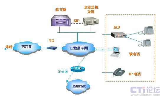 終端可以通過IAD將普通電話接入,可以是IP電話,還可以是軟電話。軟終端尤其適合出差在外的人員,只要電腦聯(lián)網(wǎng)即可撥打所需電話,通話資費均為0。