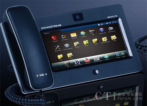 可視電話這個術語早在20 世紀60年代就已經(jīng)出現(xiàn),人們一直孜孜不倦地追求著更便捷的視聽通信。而SIP協(xié)議和H.264視頻壓縮算法的誕生為網(wǎng)絡可視電話提供了更廣闊的發(fā)展前景。這就意味新一代的可視電話產(chǎn)品能夠協(xié)同工作,并且為市場增長打下了基礎。而Grandstream 潮流網(wǎng)絡最新推出的這款可視電話GXV3175正是上述兩項完美結合體。GXV3175是一款多媒體視頻電話,可它遠不僅僅是一款視頻電話。