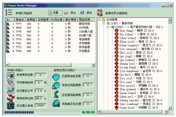路由管理器是呼叫中心不可或缺的重要部分,一方面它擴(kuò)展了交換機(jī)ACD的功能,從而實(shí)現(xiàn)呼叫的智能分配、平衡負(fù)載;另一方面,它對(duì)座席的分組、狀態(tài)進(jìn)行動(dòng)態(tài)的監(jiān)控和管理,并向其他相關(guān)應(yīng)用提供實(shí)時(shí)狀態(tài)信息和基礎(chǔ)統(tǒng)計(jì)數(shù)據(jù)。