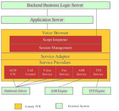 聲通技術(shù)的Amany IVR是集流程編輯環(huán)境、語(yǔ)法解析器和執(zhí)行平臺(tái)為一體的通用語(yǔ)音平臺(tái),在這基礎(chǔ)上增加了CTI中間件和TAPI/WAV等方面的技術(shù)支持,使它不僅能作為一個(gè)獨(dú)立的語(yǔ)音應(yīng)答系統(tǒng)使用,而且可以作為呼叫中心理想的IVR服務(wù)器,并且可以作為外撥服務(wù)器、傳真服務(wù)器、語(yǔ)音門戶網(wǎng)站系統(tǒng)使用,是一個(gè)具有國(guó)際先進(jìn)水平的綜合性語(yǔ)音平臺(tái);所有的可選功能模塊通過(guò)獨(dú)有的Plug-in技術(shù)可實(shí)現(xiàn)功能模塊動(dòng)態(tài)卸載,使客戶可以挑選自己需要的功能模塊,在將來(lái)需要的時(shí)候在配置相應(yīng)的功能模塊,使客戶成本大大降低,同可以保證將來(lái)系統(tǒng)平滑升級(jí),使用擁有更多的選擇。