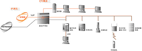 混合 IP PBX(用戶級交換機(jī))可以作為強(qiáng)大的高附加值的中心CTI 系統(tǒng)的核心設(shè)備。