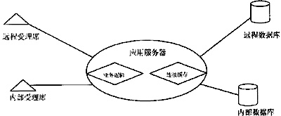 可以看出:我們把數(shù)據(jù)庫(kù)建在省受理中心(內(nèi)部數(shù)據(jù)庫(kù))或其他業(yè)務(wù)部門(外部數(shù)據(jù)庫(kù)),根據(jù)各地的需求,一個(gè)應(yīng)用服務(wù)器可對(duì)應(yīng)一個(gè)或多個(gè)數(shù)據(jù)庫(kù)服務(wù)器。應(yīng)用服務(wù)器細(xì)分為業(yè)務(wù)邏輯和數(shù)據(jù)邏輯,業(yè)務(wù)邏輯響應(yīng)客戶端的請(qǐng)求,從客戶端獲得參數(shù),返回結(jié)果,業(yè)務(wù)邏輯的組件將整個(gè)業(yè)務(wù)封裝,業(yè)務(wù)邏輯調(diào)用數(shù)據(jù)邏輯,實(shí)現(xiàn)對(duì)不同地點(diǎn)異構(gòu)數(shù)據(jù)庫(kù)的訪問(wèn)。