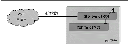 單純的語音系統(tǒng)(不需要座席,傳真等附加功能),可以采用SHP-4A、SHP-8A和SHP-16A系列的模擬線語音卡來構(gòu)成,并且不需要連接卡間交換總線,這類系統(tǒng)如證券電話委托系統(tǒng),語音信箱留言系統(tǒng),銀行稅務(wù)查詢催繳系統(tǒng)等,其典型系統(tǒng)結(jié)構(gòu)如下: