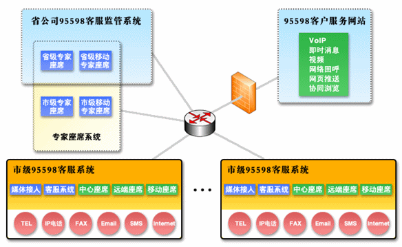 分布式座席的本質(zhì)是分布式接入。由于95598客戶服務(wù)中心系統(tǒng)基于純IP環(huán)境,對(duì)業(yè)務(wù)人員的接入采用先進(jìn)的B/S結(jié)構(gòu),業(yè)務(wù)人員只需通過計(jì)算機(jī)上的瀏覽器就可以訪問應(yīng)用服務(wù)器,瀏覽各個(gè)功能窗口,在窗口內(nèi)執(zhí)行相應(yīng)的操作,完成相應(yīng)的業(yè)務(wù)處理。同時(shí),在采用了VoIP技術(shù)和分布式IP技術(shù)之后,座席的話路不再基于PSTN公共交換網(wǎng)絡(luò),而是直接基于IP網(wǎng)絡(luò)。這樣對(duì)于話路的物理布局不再受地域和設(shè)備環(huán)境的限制,只要接入在同一網(wǎng)絡(luò)資源中,就可以傳遞話路語(yǔ)音。綜合上述兩點(diǎn),就完全實(shí)現(xiàn)了分布式布局的概念,讓業(yè)務(wù)人員擺脫地域的限制。