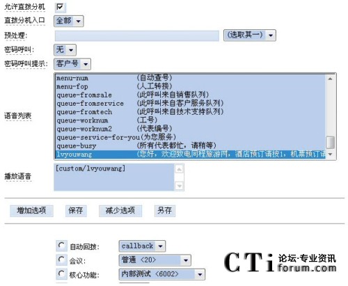 根據(jù)需要,用戶可以自己設定不同的語音以及不同的路由選擇,客戶呼入后就可以轉移到不同的服務組甚至不同的企業(yè)。