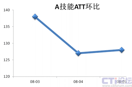 3月份開始采用新上崗員工和隊列溢出等策略接聽處理A技能話務,隨著業(yè)務熟悉度的提高,ATT從138秒下降到127秒,環(huán)比有8%的下降幅度,說明加強培訓操作,可以有效降低ATT。