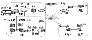 網(wǎng)音十萬元級高性能IPCC能夠在WAN/LAN內(nèi)真正實現(xiàn)全包交換技術(shù)的語音應(yīng)用平臺。它包括一個基本的NBX硬件平臺單元、一臺高性能服務(wù)器及相關(guān)路由控制、呼叫管理、通用坐席應(yīng)用及通用數(shù)據(jù)庫接口等軟硬件產(chǎn)品,它支持8外線、8座席的應(yīng)用規(guī)模。在此平臺基礎(chǔ)上,系統(tǒng)擴容時只需增加相關(guān)軟件使用許可證、外線接口卡及坐席終端即可輕松將此平臺服務(wù)容量擴充至最大外線容量90端口,最大座席容量150席的應(yīng)用規(guī)模。同時,此種應(yīng)用解決方案對集中呼入/呼出控制,分散點多,每分散點座席數(shù)少,個點通過數(shù)據(jù)線路與接入平臺連接的分布式Call