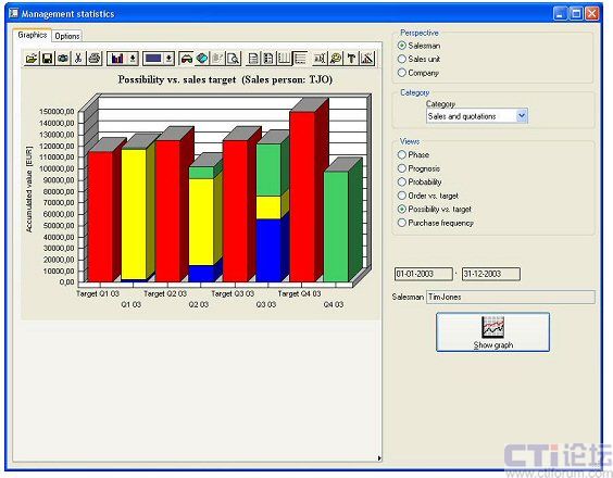 使企業(yè)用戶可以獲得與銷售相關(guān)的主要信息的圖形化視圖。通過該方案能夠簡化機(jī)會(huì)和管道管理,由此可獲得銷售和營銷成果的即時(shí)概況,同時(shí)可以提供銷售和營銷經(jīng)理與其團(tuán)隊(duì)之間的有效協(xié)作。企業(yè)可通過系統(tǒng)建立和監(jiān)視銷售單位中每個(gè)成員的銷售目標(biāo),并可以快速方便地瀏覽或修改該目標(biāo),能夠快捷地獲得季度或年度目標(biāo)的即時(shí)概況,并且使用直觀的圖形化圖表顯示這些關(guān)鍵數(shù)據(jù)和數(shù)據(jù)趨勢。管理層還可以對(duì)銷售歷史的任意時(shí)間段中的銷售人員相關(guān)的收入和支出、盈利和虧損數(shù)據(jù)進(jìn)行分析和比較。
