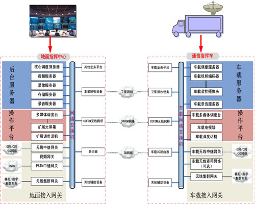 MDS系統(tǒng)還可以為通信車部署整套的車載調(diào)度平臺,方便指揮人員在突發(fā)事件現(xiàn)場實現(xiàn)對相關(guān)人員、車輛和物資的統(tǒng)一指揮調(diào)度,極大地幫助指揮人員提高快速指揮調(diào)度能力。另外,地面指揮中心和通信指揮車之間可通過衛(wèi)星網(wǎng)絡(luò)、3G網(wǎng)絡(luò)和COFDM無線網(wǎng)橋提供網(wǎng)絡(luò)通道,各種網(wǎng)絡(luò)之間互聯(lián)互通并互為備份,確保不同環(huán)境下調(diào)度網(wǎng)絡(luò)的暢通。