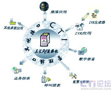 本部件在通用工業(yè)控制機(jī)平臺(tái)上加插三匯各類語音卡、座席卡、傳真,通過三匯交換核心軟件,構(gòu)成的一個(gè)集自動(dòng)呼叫分配,呼叫信息采集,呼入呼出控制,傳真收發(fā)等諸多功能于一體的綜合通訊服務(wù)系統(tǒng)。