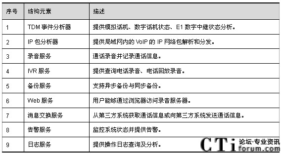 數(shù)字錄音系統(tǒng)通過模擬用戶線或者Lanside E1與交換機相連。當錄音對象摘機通話時,交換機將數(shù)字錄音系統(tǒng)和被錄音通話雙方建立會議,并通過CTI向數(shù)字錄音系統(tǒng)發(fā)出錄音啟動命令;當錄音對象結束通話時,交換機將數(shù)字錄音系統(tǒng)和被錄音通話雙方拆除會議,并通過CTI向數(shù)字錄音系統(tǒng)發(fā)出錄音結束命令。