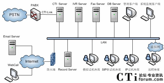 | 11 | CTI Sevrer | 電腦電話應(yīng)用服務(wù),聯(lián)絡(luò)中心通過CTI服務(wù)實現(xiàn)呼叫控制,呼叫技能路由等 |