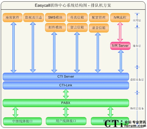 圖2-4 EasyCall聯(lián)絡(luò)中心系統(tǒng)結(jié)構(gòu)圖-排隊機方案
