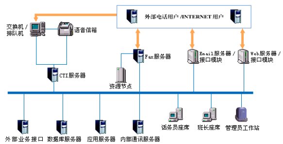 接口子系統(tǒng):實(shí)現(xiàn)NY Call Center系統(tǒng)和外部環(huán)境、交換機(jī)的信息、數(shù)據(jù)的交換。包括CTI接口、E-mail接口、Fax接口、Web接口、IVR接口等;