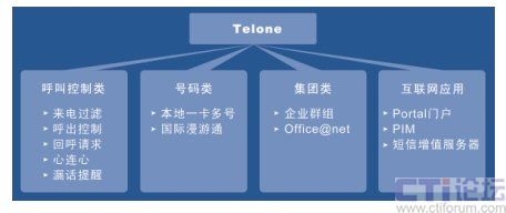 作為智能網(wǎng),Telone平臺(tái)可對(duì)外提供PPS(預(yù)付費(fèi)業(yè)務(wù))、移動(dòng)群組(M800)、被叫付費(fèi)(800)、來(lái)話過(guò)濾等業(yè)務(wù)、國(guó)際漫游通。