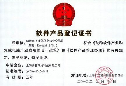 Egoocall多媒體聯(lián)絡(luò)中心軟件獲得軟件產(chǎn)品登記證書