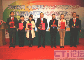 CTI論壇(ctiforum)04月14日消息: 日前,”蘇州 2009中國(guó)呼叫中心高峰論壇暨奧運(yùn)觀眾呼叫中心志愿者表彰大會(huì)”在蘇州工業(yè)園區(qū)召開,表彰在奧運(yùn)期間對(duì)奧運(yùn)呼叫中心作出突出貢獻(xiàn)的十三家志愿者選派單位及先進(jìn)個(gè)人。大會(huì)由第二十九屆奧林匹克運(yùn)動(dòng)會(huì)組織委員會(huì)與中國(guó)信息化推進(jìn)聯(lián)盟客戶關(guān)系管理專業(yè)委員會(huì)共同主辦,蘇州工業(yè)園區(qū)、CCCS聯(lián)絡(luò)中心標(biāo)準(zhǔn)委員會(huì)、ICMI客戶管理學(xué)院(中國(guó)區(qū))共同承辦。