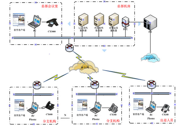 在方案的推進(jìn)過程中,我們在各大會(huì)議室部署了CX3000、在桌面分別部署了CX600與IP331。通過這些終端的自身的優(yōu)勢及與系統(tǒng)的配合,實(shí)現(xiàn)了完整的電話體驗(yàn)、PSTN無縫結(jié)合、LYNC完整的企業(yè)級語音功能、 高清晰語音質(zhì)量 、專業(yè)的語音會(huì)議等用戶需求,F(xiàn)在此方案在鳳凰網(wǎng)的會(huì)議室及桌面的應(yīng)用效果良好,場景應(yīng)用圖如下:
