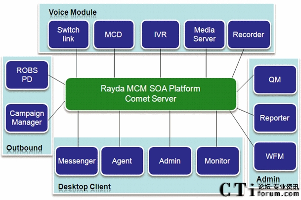 Rayda MCM多渠道呼叫管理平臺,是呼叫中心基礎呼叫業(yè)務的信息化支撐平臺系統(tǒng)。Rayda MCM以先進的呼叫信息交互為核心,涵蓋呼叫中心系統(tǒng)所必須的ACD、IVR、PD、錄音、質(zhì)檢等基本功能,更整合了統(tǒng)一通信、電話營銷等多項企業(yè)迫切需要的功能。MCM支持支持從板卡、傳統(tǒng)PBX到IPPBX網(wǎng)絡等各種接入方式的建設,支持從單點到分布式等各種組網(wǎng)方式,適應從中小企業(yè)到外包型等各種規(guī)模呼叫中心的需求。