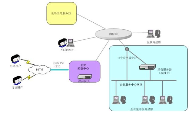 第一期工程包括16個座席,6路模擬中繼接入媒體網(wǎng)關(guān)。2006年7月6日安裝,三天后投入試運行。以后會擴充座席數(shù),并以一路E1,SS7信令接入。由于其業(yè)務(wù)需要極高的可靠性,媒體網(wǎng)關(guān)、控制中心、數(shù)據(jù)庫服務(wù)器、以及業(yè)務(wù)平臺放置在電信機房托管,錄音服務(wù)器放在中心本地局域網(wǎng)內(nèi)。