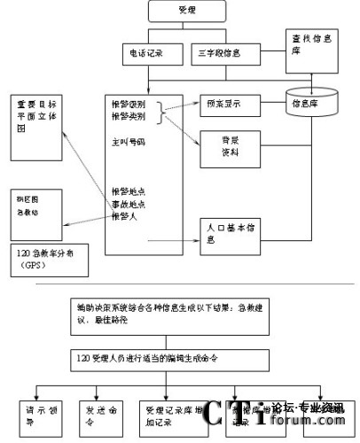 受理臺(tái)根據(jù)報(bào)警類別和報(bào)警地點(diǎn)等信息,判別是否是重點(diǎn)單位、重大事故等,如是則自動(dòng)查找相關(guān)的數(shù)據(jù)庫,調(diào)出預(yù)存的急救方案,最后由120指揮長作出決策。