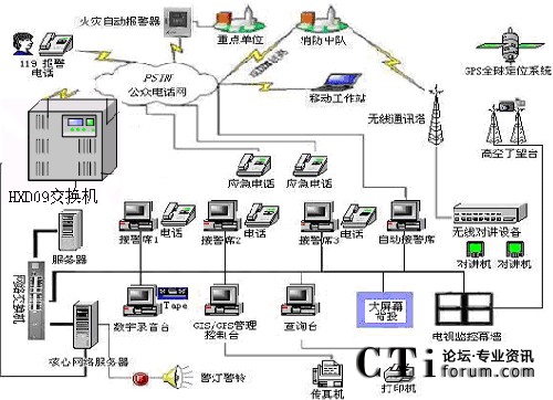 隨著國民經(jīng)濟的不斷發(fā)展,我國城市的現(xiàn)代化進程在不斷加快,因而對消防部隊的反應(yīng)速度、調(diào)度指揮、現(xiàn)場搶險救災(zāi)等綜合能力要求越來越高.現(xiàn)代化的消防通信指揮系統(tǒng)是受理火災(zāi)報警、實施通訊調(diào)度指揮、執(zhí)行滅火救災(zāi)工作的必不可少的技術(shù)裝備,它對于保護國家和人民生命財產(chǎn)的安全、保障經(jīng)濟建設(shè)的順利發(fā)展、維護社會的穩(wěn)定有著十分重要的意義.,恒訊達公司的(HXD09)交換機切合實際,綜合應(yīng)用現(xiàn)代通信技術(shù)、計算機網(wǎng)絡(luò)技術(shù)、結(jié)合地理信息技術(shù)、VOIP、虛擬現(xiàn)實技術(shù),開發(fā)了網(wǎng)絡(luò)化、智能化、可視化的、高度模塊化、以技術(shù)先進、組網(wǎng)靈活、整體性強、實時性高、安全可靠、實用高效為特點的可編程智能語音交換機,HXD09交換機接口易開放性,結(jié)合圖形化的流程生成器和二次開發(fā)接口,為119系統(tǒng)平臺開發(fā)商提供強大的平臺保證。