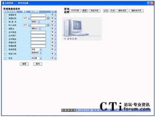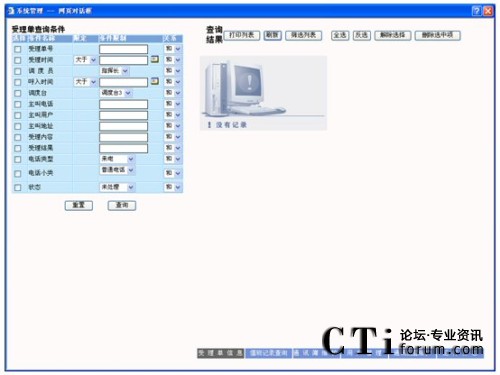 受理單分為為兩種基本類型:呼入電話受理單與呼出電話受理,可通過單選按鈕在這兩種類型的受理單的列表之間進(jìn)行切換,默認(rèn)為呼入電話受理單列表。