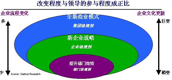 成功實(shí)施CRM的第一個關(guān)鍵是贏得企業(yè)的高層支持。高層支持的項(xiàng)目,或稱“一把手”工程,往往能夠推行得比較順利。在我們的實(shí)施中,最經(jīng)常項(xiàng)目牽頭人是客戶方負(fù)責(zé)運(yùn)營的老總或總經(jīng)理。企業(yè)要應(yīng)用CRM系統(tǒng),不應(yīng)當(dāng)僅僅是信息部門或銷售部門內(nèi)部的事情,而應(yīng)當(dāng)是整個企業(yè)在高層領(lǐng)導(dǎo)的直接參與指導(dǎo)之下的多方協(xié)同調(diào)整,因?yàn)镃RM涉及的是市場、銷售、服務(wù)等多個與客戶打交道的部門和流程。企業(yè)內(nèi)部的高層管理者必須承擔(dān)起項(xiàng)目負(fù)責(zé)人的角色,才能讓CRM實(shí)施順利地開展,才能完成部門之間的協(xié)同,才能實(shí)現(xiàn)企業(yè)內(nèi)部的文化轉(zhuǎn)變。高層參與的程度可以由下面的圖示說明: