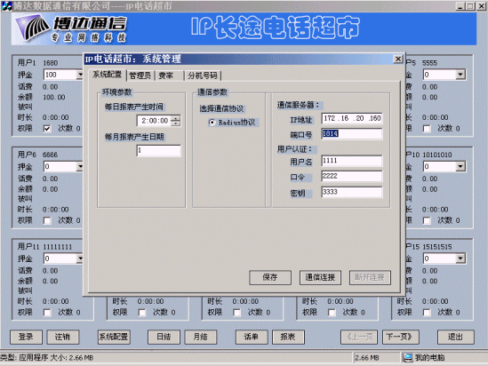 專用于VoIP技術(shù)的企業(yè)級(jí)語音計(jì)費(fèi)關(guān)鍵軟件(最大可管理10000個(gè)語音終端、網(wǎng)關(guān),內(nèi)置博達(dá)Radius Server)