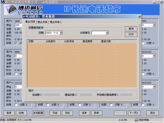博達(dá)公司在IP電話認(rèn)證的基礎(chǔ)上開發(fā)的IP電話計(jì)費(fèi)計(jì)費(fèi)系統(tǒng),實(shí)現(xiàn)了用戶管理、卡用戶批量生成、費(fèi)率設(shè)置、折扣設(shè)置、話單查詢、帳務(wù)查詢、管理統(tǒng)計(jì)、運(yùn)營分析等功能,為電信運(yùn)營商的運(yùn)營和企業(yè)用戶對(duì)IP電話的內(nèi)部管理和服務(wù)提供了有利條件。