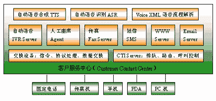協(xié)作型CRM強調的是交互性,它借助多元化、多渠道的溝通工具,實現(xiàn)企業(yè)和用戶之間的雙向互動,保障渠道的有效性和一致性,在已有的CTI技術基礎上,形成全面接觸的多媒體接入平臺,支持固網(wǎng)、無線網(wǎng)、互聯(lián)網(wǎng)等多種接入方式,提供語音、傳真、短信、Web、Email等多種服務方式。