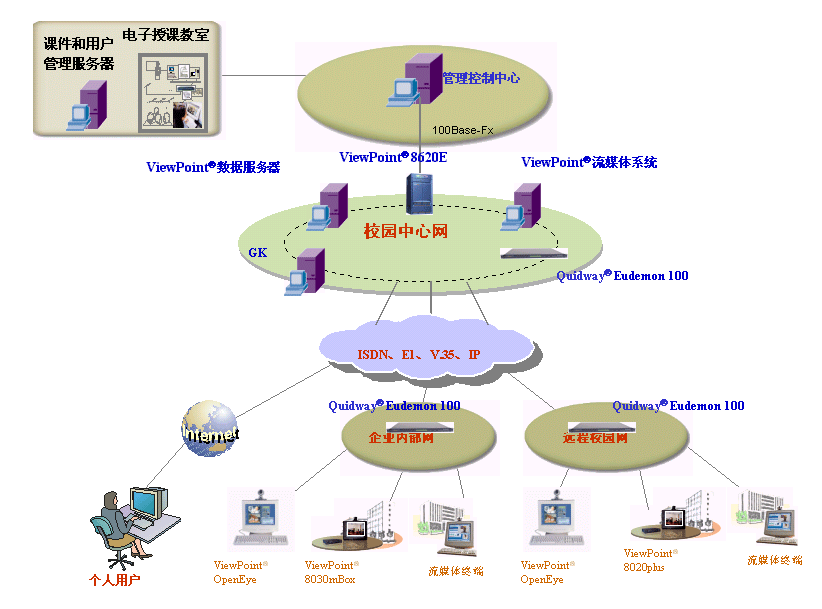 對(duì)于專網(wǎng)或非面向運(yùn)行的視訊網(wǎng)絡(luò)建設(shè),“視點(diǎn)通”ViewPoint®8000綜合視訊系統(tǒng)可以提供寬窄帶一體化的視訊交換平臺(tái),提供各種線路接口方式,可充分利用專網(wǎng)和企業(yè)的現(xiàn)有網(wǎng)絡(luò),同時(shí)考慮網(wǎng)絡(luò)的發(fā)展需要,支持?jǐn)U展其它接口,保護(hù)用戶投資。