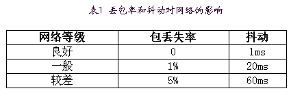 一般根據(jù)丟包率和抖動(dòng)將網(wǎng)絡(luò)分為三級(jí),見表1。