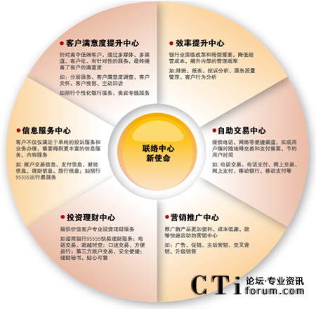 對于銀行業(yè)來說,聯(lián)絡(luò)中心已經(jīng)成為為客戶提供優(yōu)質(zhì)、快捷的金融理財(cái)服務(wù)的第二窗口。隨著電子化建設(shè)的不斷深入,寬帶、Internet和3G時(shí)代帶來的IP融合,聯(lián)絡(luò)中心為金融服務(wù)帶來了更廣泛的創(chuàng)新,未來的銀行聯(lián)絡(luò)中心將為客戶提供的金融服務(wù)趨于無所不能。銀行聯(lián)絡(luò)中心已經(jīng)成為自助交易中心、投資理財(cái)中心、營銷推廣中心和信息服務(wù)中心,借助聯(lián)絡(luò)中心,銀行與客戶可以隨時(shí)隨地建立緊密的多媒體互動,提升客戶滿意度和服務(wù)效率。