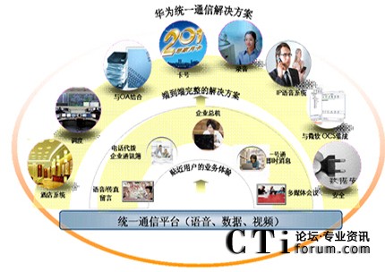 華為企業(yè)統(tǒng)一通信解決方案把語音、數(shù)據(jù)、視頻融合在統(tǒng)一的平臺上,基于該平臺可以方便實現(xiàn)IP語音系統(tǒng)、語音/數(shù)據(jù)會議系統(tǒng)、統(tǒng)一消息、話務臺、無線WIFI、安全、自助管理等多業(yè)務多系統(tǒng)的融合和協(xié)作。