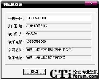 在A8電腦傳真機(jī)的電話商務(wù)通主界面,點擊歸屬地按鈕,出現(xiàn)手機(jī)歸屬地查詢界面,輸入手機(jī)號碼,點擊查詢,界面上會顯示出該手機(jī)的歸屬地,如果此號碼已在電話簿中,則界面上會同時顯示該電話對應(yīng)的聯(lián)系人信息。
