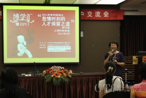 CTI論壇(ctiforum)6月3日消息(記者 張潔):2011年5月31日下午,上?茖W(xué)會(huì)堂思南樓九層賓客盈門,勝友如云。易才博普奧“博學(xué)匯”系列活動(dòng)之四“危情時(shí)刻的人才保留之道”研討會(huì)在輕松愉悅的氛圍中拉開帷幕。本屆“博學(xué)匯”以“人才保留”為主題,邀請了業(yè)內(nèi)權(quán)威專家及其資深從業(yè)者就人才保留這一話題展開一系列探討。會(huì)上分別從學(xué)術(shù)觀點(diǎn)、呼叫中心、人力資源、服務(wù)外包等諸多領(lǐng)域來探討人才保留的種種新途徑、新方法。