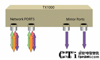 與TX100相同,將TX1000直接高阻搭接在網(wǎng)絡中的任何位置,兩個Network端口高阻搭接在主干網(wǎng)上,另兩個端口Monitor A和Monitor