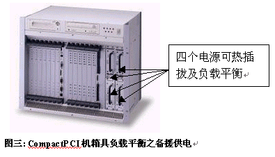 如圖三,CompactPCI機箱備有熱備份電源及風扇,電源自動負載平衡,降低故障發(fā)生率。