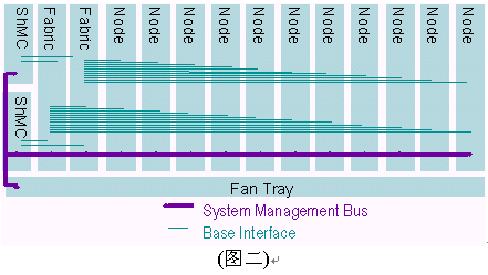 I2C總線使用100Khz時(shí)鐘和3.3V信號(hào)。ATCA規(guī)范制定要求2個(gè)IPMB總線,分別冠以IPMB-A和IPMB-B,兩條總線合一稱之為IPMB-0。IPMB可以以雙總線或雙星型配置方式實(shí)現(xiàn)。之所以要求雙IPMB總線是為了保證系統(tǒng)管理子系統(tǒng)的可靠性。IPMB總線被用作聯(lián)接ShMC與ATCA單板和ATCA機(jī)架中FRUs的橋梁。雙IPMB總線可同時(shí)被使用以加倍傳輸頻寬,但設(shè)計(jì)者必須考慮萬一其中一條IPMB總線失靈所帶來的沖擊。典型的ATCA背板上系統(tǒng)管理間的互聯(lián)如下圖所示,在背板上有兩個(gè)ShMC槽位,兩個(gè)交換槽位,11個(gè)節(jié)點(diǎn)槽位和1個(gè)風(fēng)扇的連接。值得說明的是管理總線與所有的節(jié)點(diǎn)槽、交換槽通過一對雙備援的ShMC聯(lián)接。