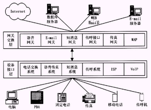 隨著社會(huì)的發(fā)展,各種通信工具的日益增多,人們?yōu)榱讼嗷ケ3致?lián)系,每天都不得不面對(duì)手機(jī)、BP機(jī)、電話機(jī)、傳真機(jī)等多種通信設(shè)備,還要定時(shí)檢查電子郵件和語音信息以及傳真信箱等,那么能否將各種通信手段融合,使人們?cè)谛枰獣r(shí)能方便地利用其中某一種設(shè)備來存取其所有的信息呢?統(tǒng)一消息服務(wù)就能幫助人們實(shí)現(xiàn)這一夢(mèng)想,它將所有類型的消息,包括語音、電子郵件、傳真、數(shù)據(jù)等全部放入一個(gè)統(tǒng)一信箱中,人們可以通過任意一種通信終端,如電話機(jī)、傳真機(jī)、手機(jī)、計(jì)算機(jī)等來訪問信箱中的任何消息,進(jìn)行閱讀、聽取或者轉(zhuǎn)發(fā)其內(nèi)容。統(tǒng)一消息服務(wù)的最終目標(biāo)將使用戶可在任意時(shí)間、任意地點(diǎn)、通過任意通信終端存取任意信息。