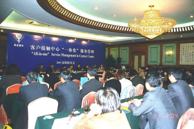 2003年2月21日,五洲賓館長江廳高朋滿座,由香港資深Call Center服務商易寶通訊服務有限公司主辦的電信行業(yè)客戶接觸中心"一體化"服務管理研討會在這里隆重舉行。全國各地的電信、移動、聯(lián)通、網(wǎng)通等運營商及易寶的合作伙伴共四十多家單位的Call center負責人和專家參加了此次會議。