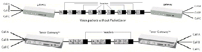 saverTM會將同一時(shí)間通話中將同一個(gè)目的地的所有語音IP包的包頭部分共享,這樣可以節(jié)省許多頻寬,并加快設(shè)備運(yùn)作的速度。經(jīng)過實(shí)驗(yàn)證明:只需三方電話就可改善40%的頻寬使用效率。此特色讓Quintum