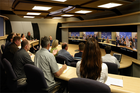 而真正的極致遠(yuǎn)真環(huán)境則是由一組而不是一個(gè)攝像頭將遠(yuǎn)端會(huì)場(chǎng)多個(gè)角度同時(shí)拍攝,組合為完整的無(wú)拼接畫面;會(huì)場(chǎng)顯示系統(tǒng)全景顯示遠(yuǎn)端會(huì)場(chǎng),每個(gè)角度與會(huì)者均清晰可辨;本地和遠(yuǎn)端渾然一體,仿佛身居同一個(gè)會(huì)場(chǎng);這就是寶利通極致遠(yuǎn)真帶給您的當(dāng)今最高效遠(yuǎn)程交流工具,以其獨(dú)特的優(yōu)勢(shì)彌補(bǔ)您93%的信息空白。