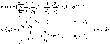 分別為語音自動應答系統(tǒng)與人工服務系統(tǒng)的平穩(wěn)狀態(tài)分布。